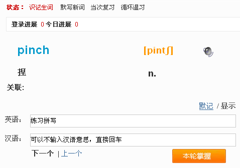 学习步骤也灵活:一个单词(词组)的学习涉及听音、跟读、拼读、拼写等步骤的多次重复。学习者可以根据自身的学习习惯选择使用这些步骤。如下图: